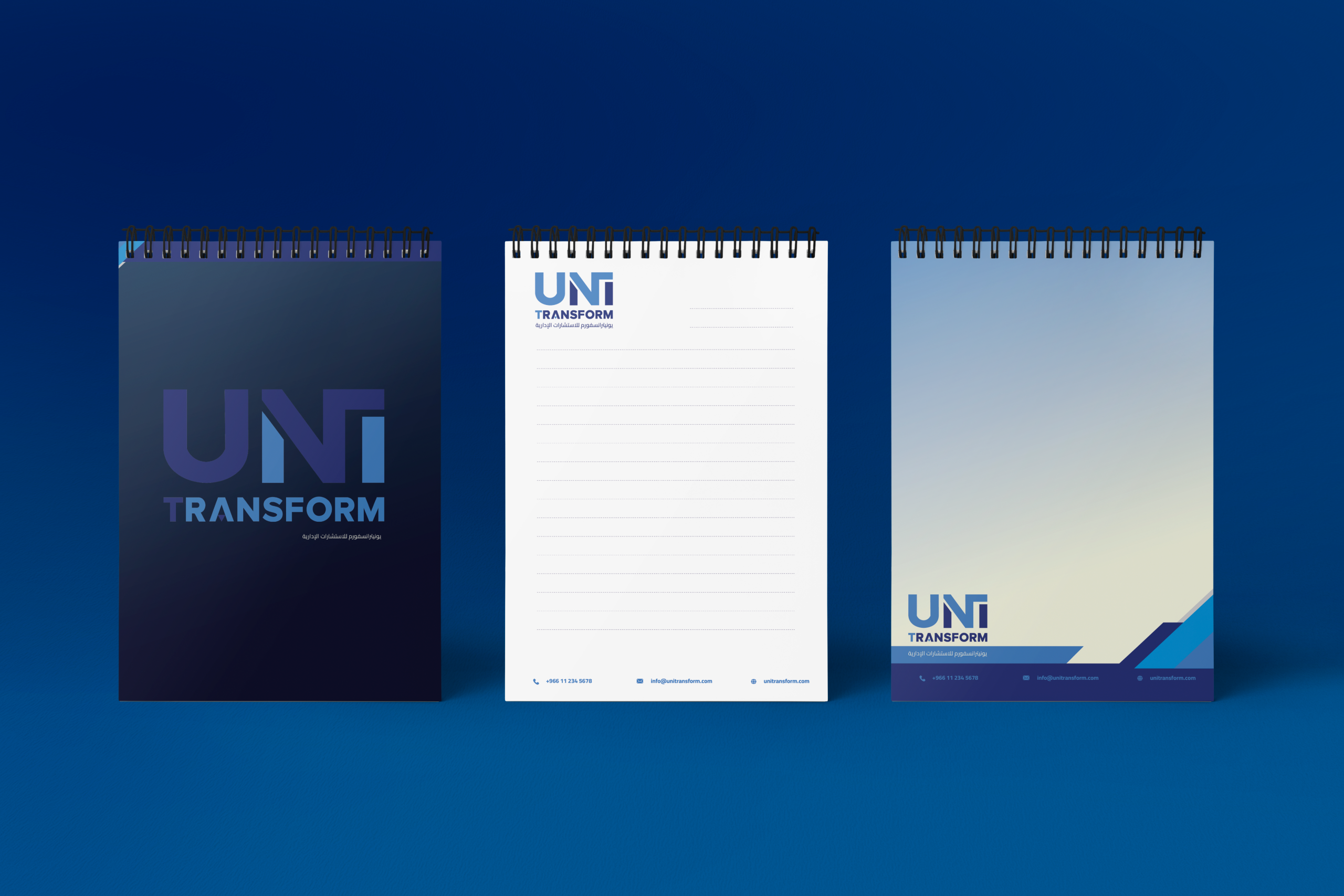 The visual identity was developed to represent UniTransform as a modern higher education partner with a national mission and a future oriented outlook. The identity system reflects stability, confidence, and intellectual depth, supported by a clean and structured design language suitable for academic and executive audiences.